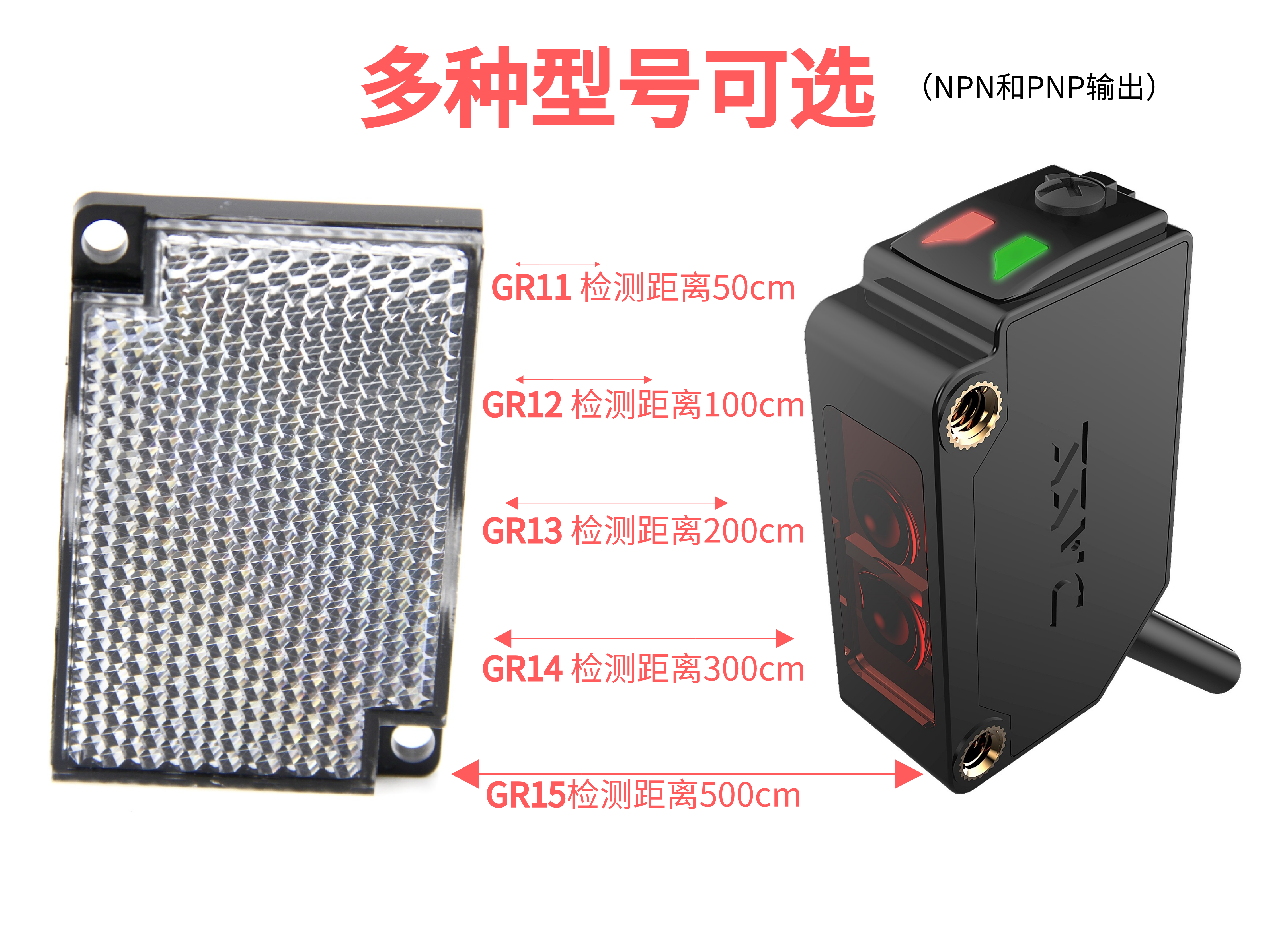 而回歸反射型必須由傳感器探頭和回歸反射板組合使用;
