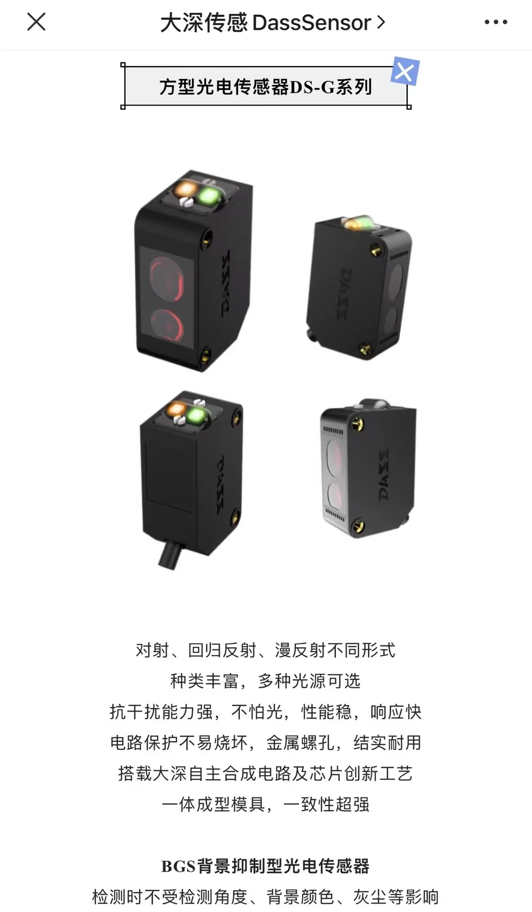 DS-G系列方形光電傳感器—物流輸送分揀的高效之道